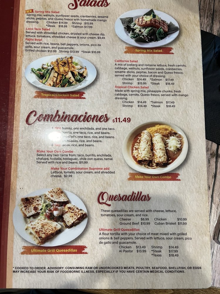 Spring mix, walnuts, sunflower seeds, cranberries, sesame sticks, pepitas, and queso fresco with homemade mango dressing